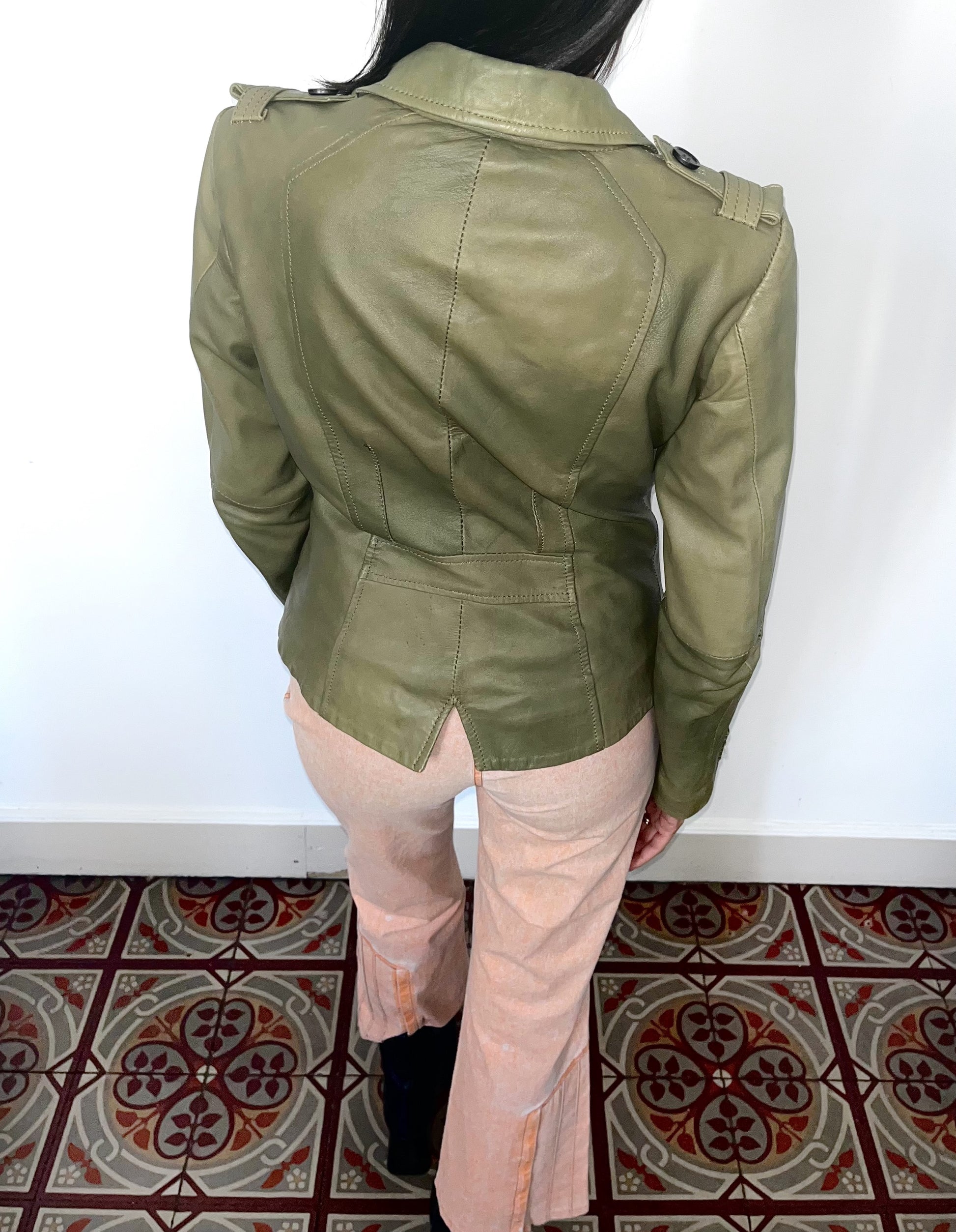 Composition : 98 % coton, 2 % élasthanne. Taille indiquée 44 mais correspond plutôt à un 38. En très bon état.